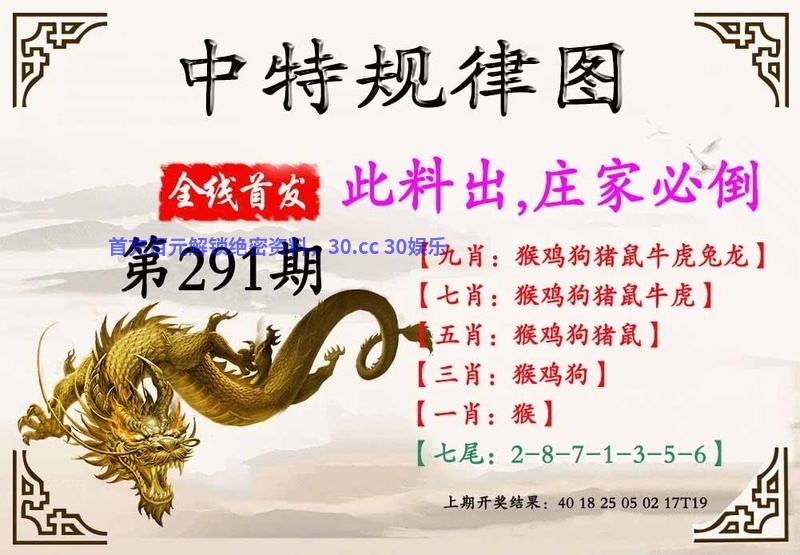 291期:九肖✡龙鸡鼠马猴虎羊狗蛇✡开:狗44准 |